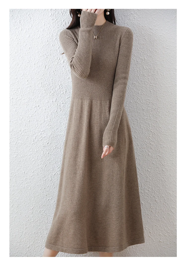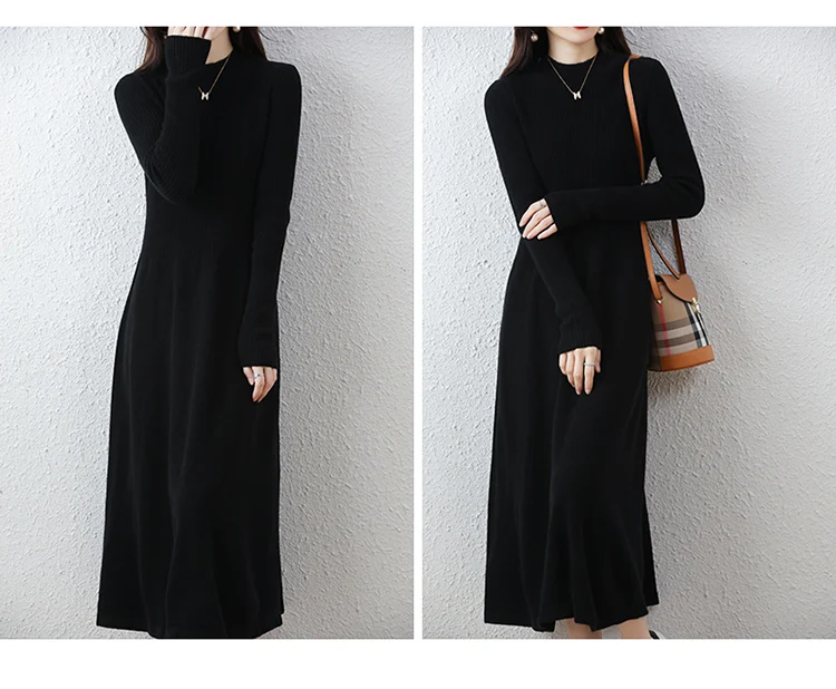 This classic, solid-colored dress is a perfect addition to your autumn and winter wardrobe. With a loose, relaxed silhouette and a mid-calf length, it's designed for comfort and casual style. The dress is made from a soft, cashmere-feel material with medium stretch, providing a cozy yet flexible fit. It features an O-neckline and regular full-length sleeves, making it a simple and elegant choice for daily wear or special occasions like Thanksgiving.