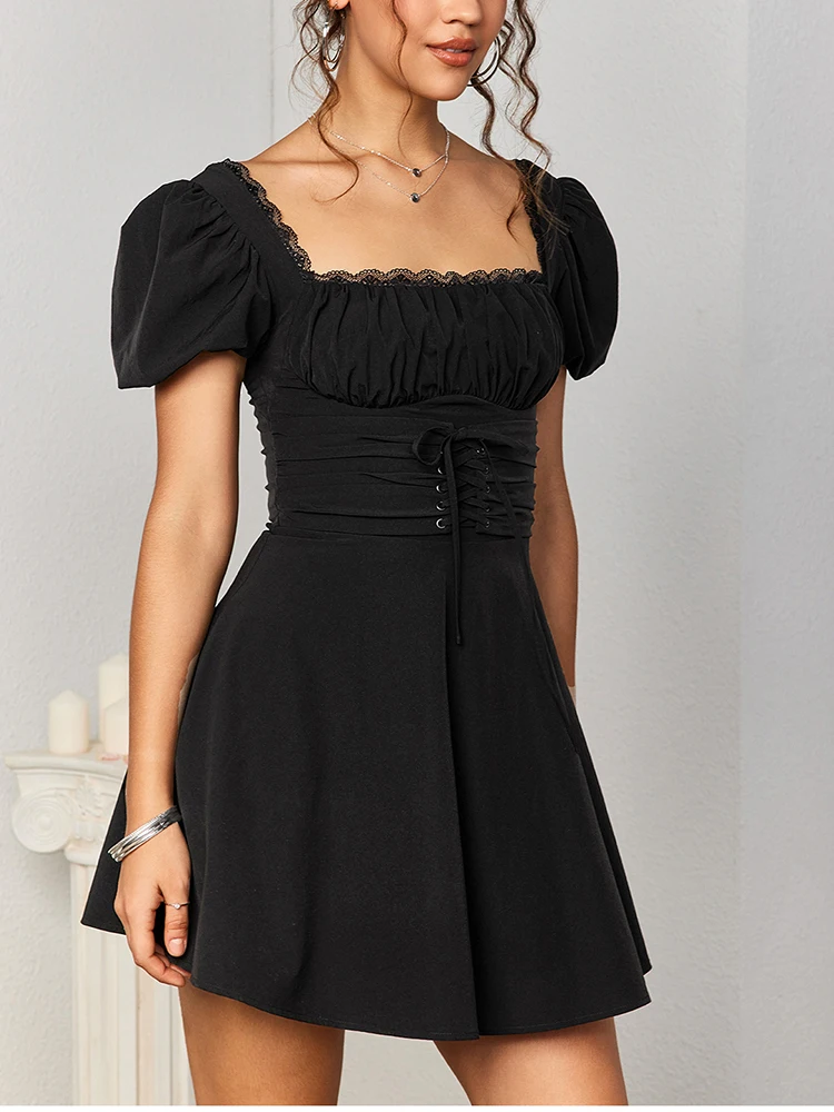 Step out in style this summer with the NewAsia Garden Mini Dress. This A-line dress features a flattering square neckline and charming puff sleeves, giving it a stylish yet casual look. Made from a comfortable blend of polyester and spandex, the dress offers high stretch for a perfect, slim fit. It's designed with a zipper closure and a tie detail, and its solid color makes it a versatile piece for any summer occasion.