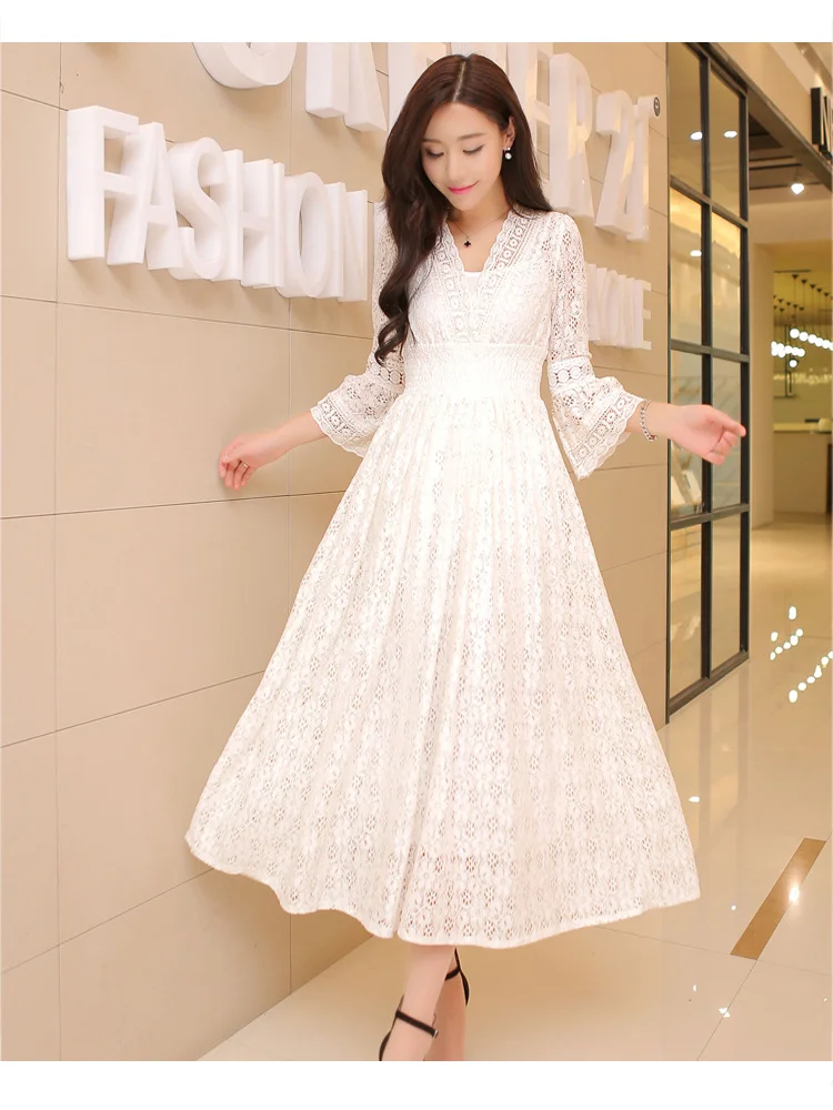 This elegant dress is designed to give you a flattering silhouette with its slim fit design that accentuates your body's curves. The delicate lace V-neckline adds a touch of femininity and sophistication, while the beautiful floral print brings a splash of color, making it a perfect choice for beach vacations. This one-piece, mid-length skirt offers both coverage and a chance to show off your legs, making it a versatile option for any occasion.